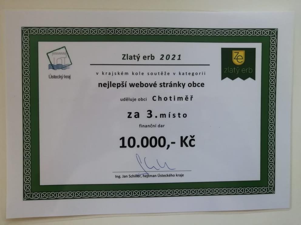 Webové stránky obce Chotiměř získaly ocenění v soutěži Zlatý erb. V krajském kole se umístily mezi obcemi na 3. místě. Na 2. pozici skončily Modlany a vítězem v kategorii vesnic jsou stránky Tisé.