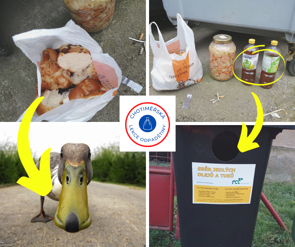 Situace: Všední den, cca 11:45. Před kontejnery na tříděný odpad u obchodu někdo jen tak odkládá úžasnou vánočně-silvestrovskou trojkombinaci: tašku plnou vánočky, velkou sklenici utopenců a láhve s olejem na smažení. Děkujeme za milé dárky, ale vyházet něco uprostřed obce před popelnice není řešení. Pojďme si připomenout správný postup.