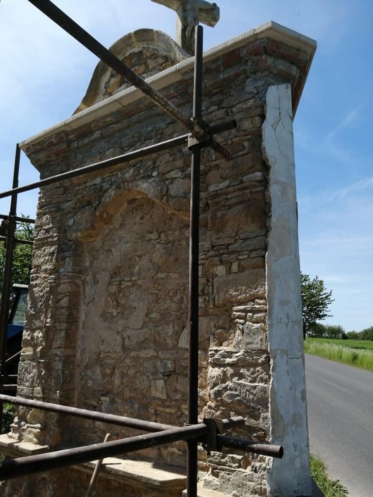 Zastavte se u kapličky při některé z procházek v okolí obce a podívejte se zblízka na propracovanou strukturu pískovce a opuky z místních lomů. Pokud vše půjde dle plánu, nové štuky včetně obnovených soklů, pilastrů a říms budou hotovy na podzim.