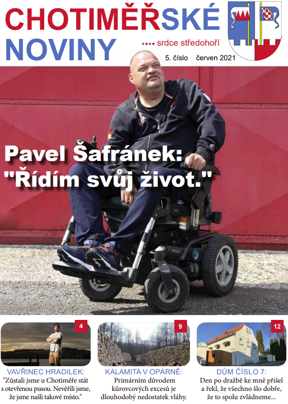 Kromě toho se v 5. čísle Chotiměřských novin například dočtete, jak kůrovcová kalamita zasáhla okolí obce, získáte aktuální přehled o financování likvidace odpadů a v rubrice Chotiměřské recepty naleznete tip na výtečný trhaný koláč.