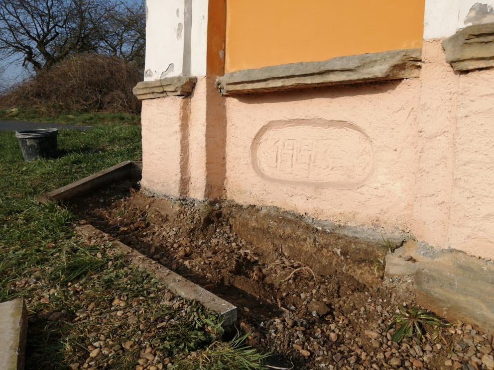 První etapou je odstranění nánosů kolem stavby, odhalení základů a likvidace poškozených omítek. Cílem je, aby se stavba nadechla a byla připravena pro další kroky (kamenické práce, oprava omítek, úprava blízkého okolí).