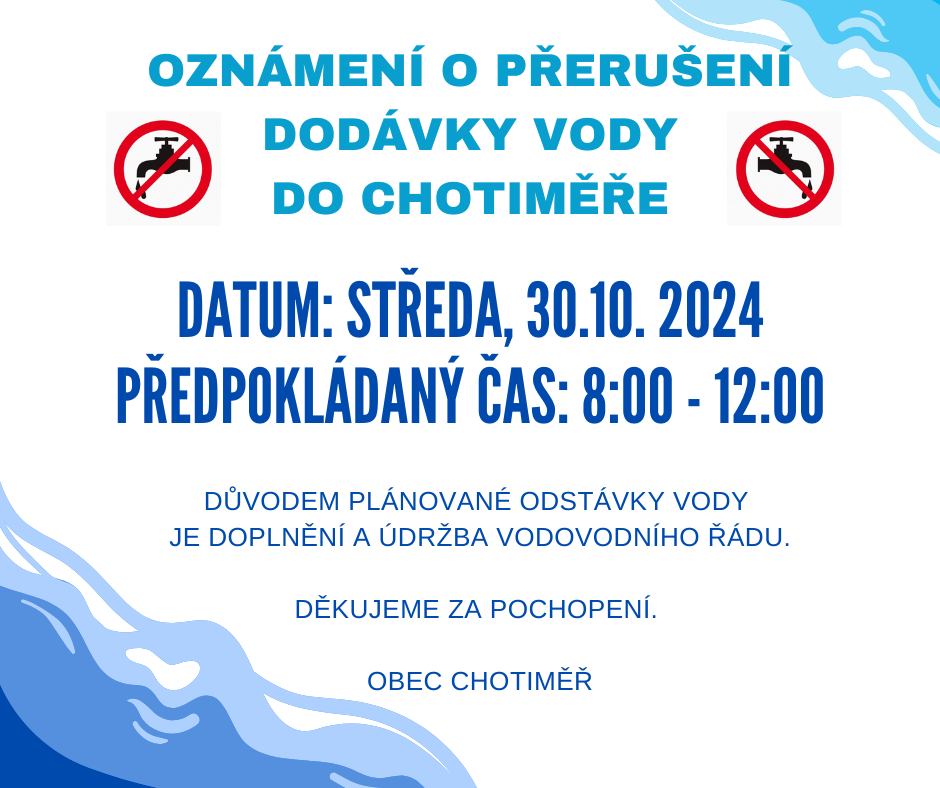Doporučujeme domácnostem připravit si drobnou zásobu. Při vracení vody do řadu je také třeba počítat s mírnějším zakalením, které by se mělo záhy odplavit.