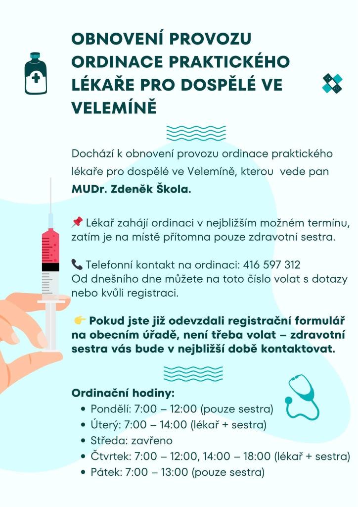 Telefonní kontakt pro dotazy a registraci je 416 597 312, přičemž ti, kteří již odevzdali registrační formulář na obecním úřadě, budou kontaktováni zdravotní sestrou.