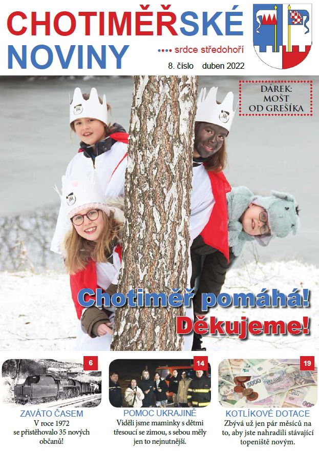 Co v čísle najdete? Aktuální zprávy o dění v obci, ohlédnutí za zimními spolkovými a obecními akcemi, rozhovor s paní Hřebíkovou, další užitečné rady pro nakládání s odpady nebo report z pomoci místních válkou zasažené Ukrajině. To a mnohem víc v Chotiměřských novinách č. 8. !